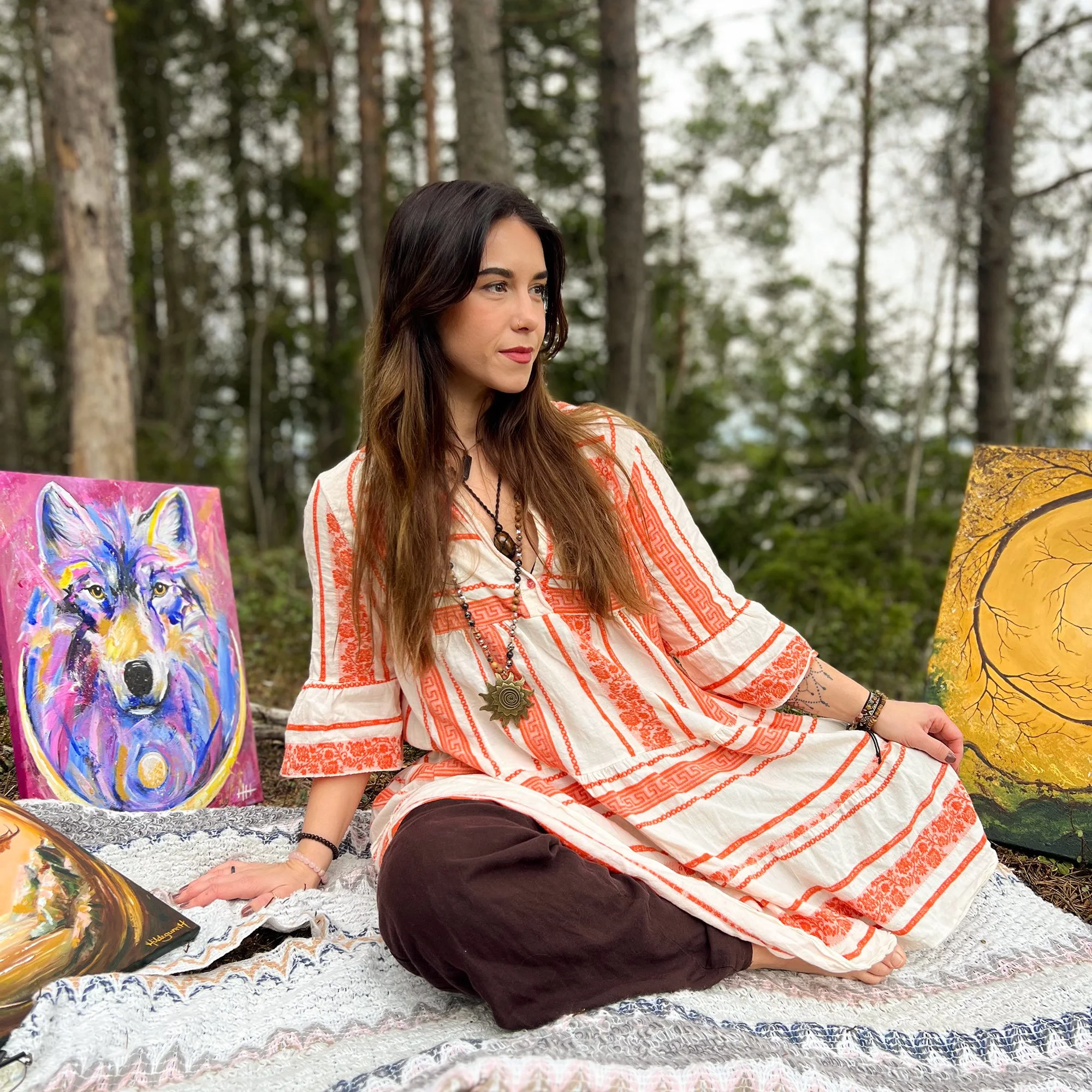 Som kunstner har jeg en spesiell dragning mot naturen, kraftdyr og organiske former som sirkler og spiraler. Dette vil du se gjentas mye i kunsten min.